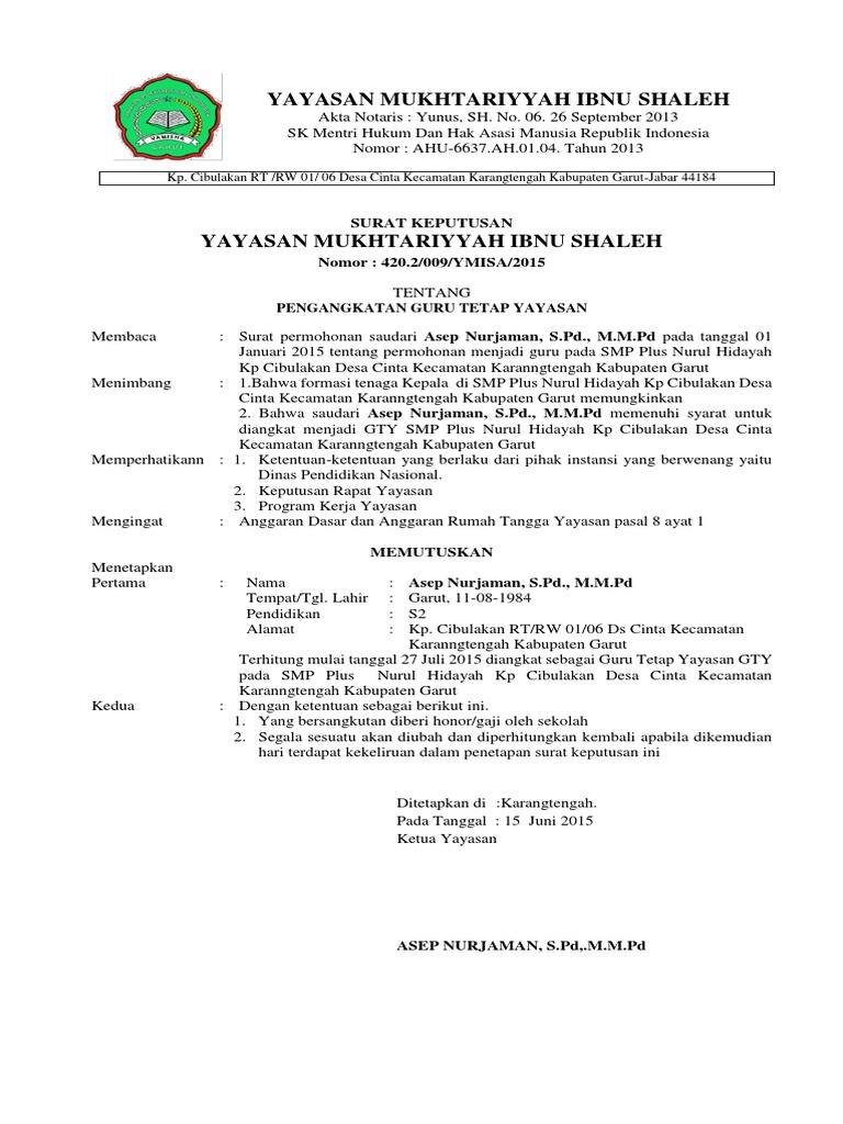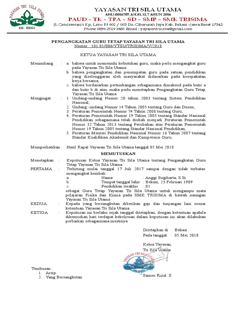untuk "Sk Gty - Download Sk Guru Tetap Yayasan Gty Salam Pendidikan Indonesia / 96%(24)96% found this document useful (24 votes)."